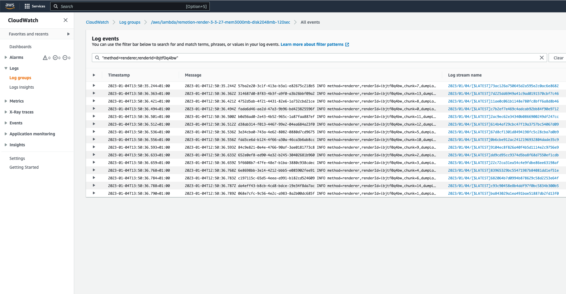 renderMediaOnLambda()addlogLevel: "verbose"as an option. You will get acloudWatchLogsfield in the return value.